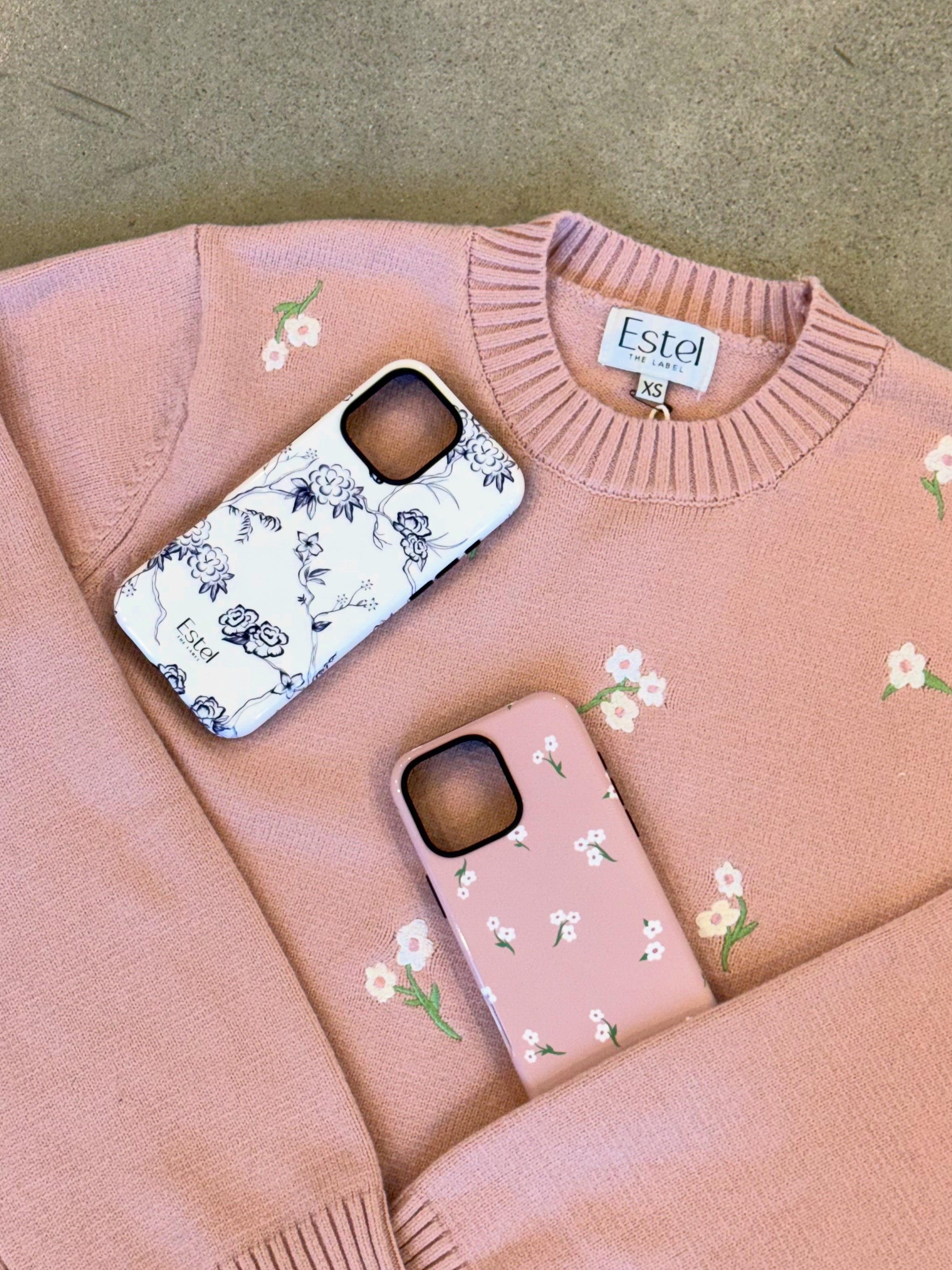 L'Étui Elizabeth d'Estel s'agence parfaitement avec le design floral de son Tricot Elizabeth.