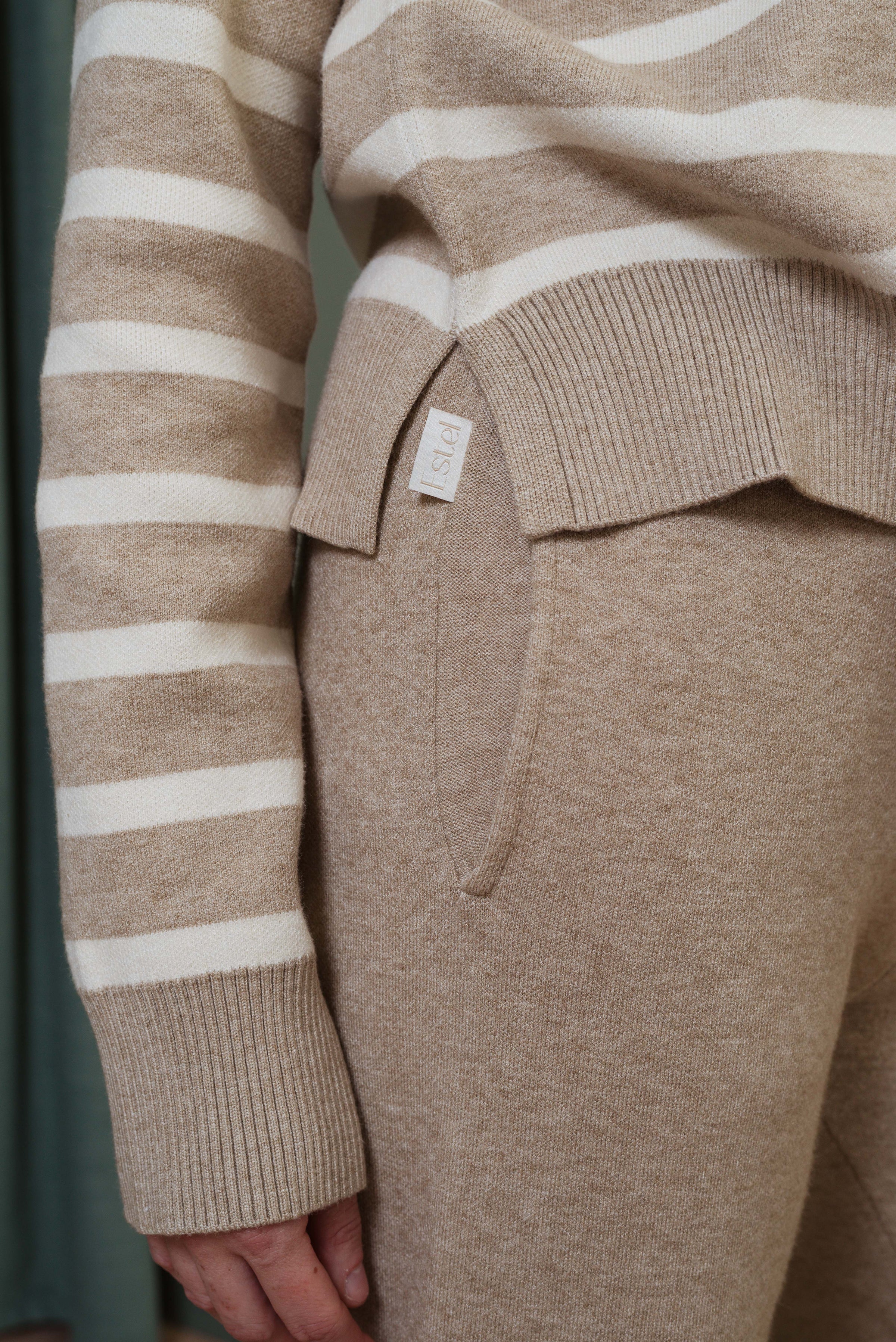 Le Polo Valentine est une pièce de choix pour Estel. Avec sa texture tellement confortable et son mélange de beiges, il apporte juste ce qu’il faut de douceur à vos looks confo.
