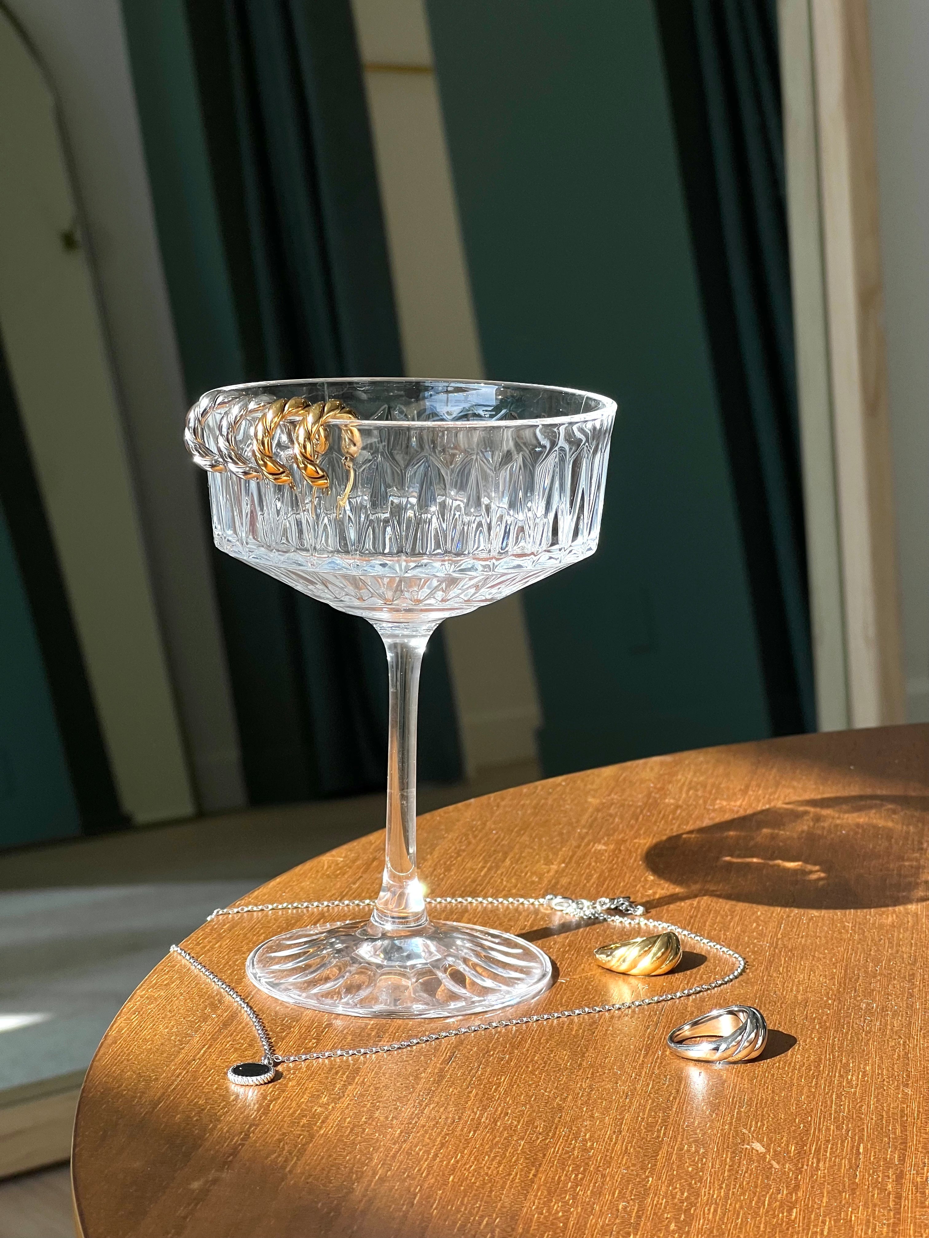 Pour que les bijoux restent beaux à long terme, Estel ne les met pas sous la douche, dans le bain ou dans la piscine. Elle évite aussi le contact avec ses produits quotidiens (crème, parfum). Lors de son yoga chaud ou activités physiques, elle enlève ses bijoux.